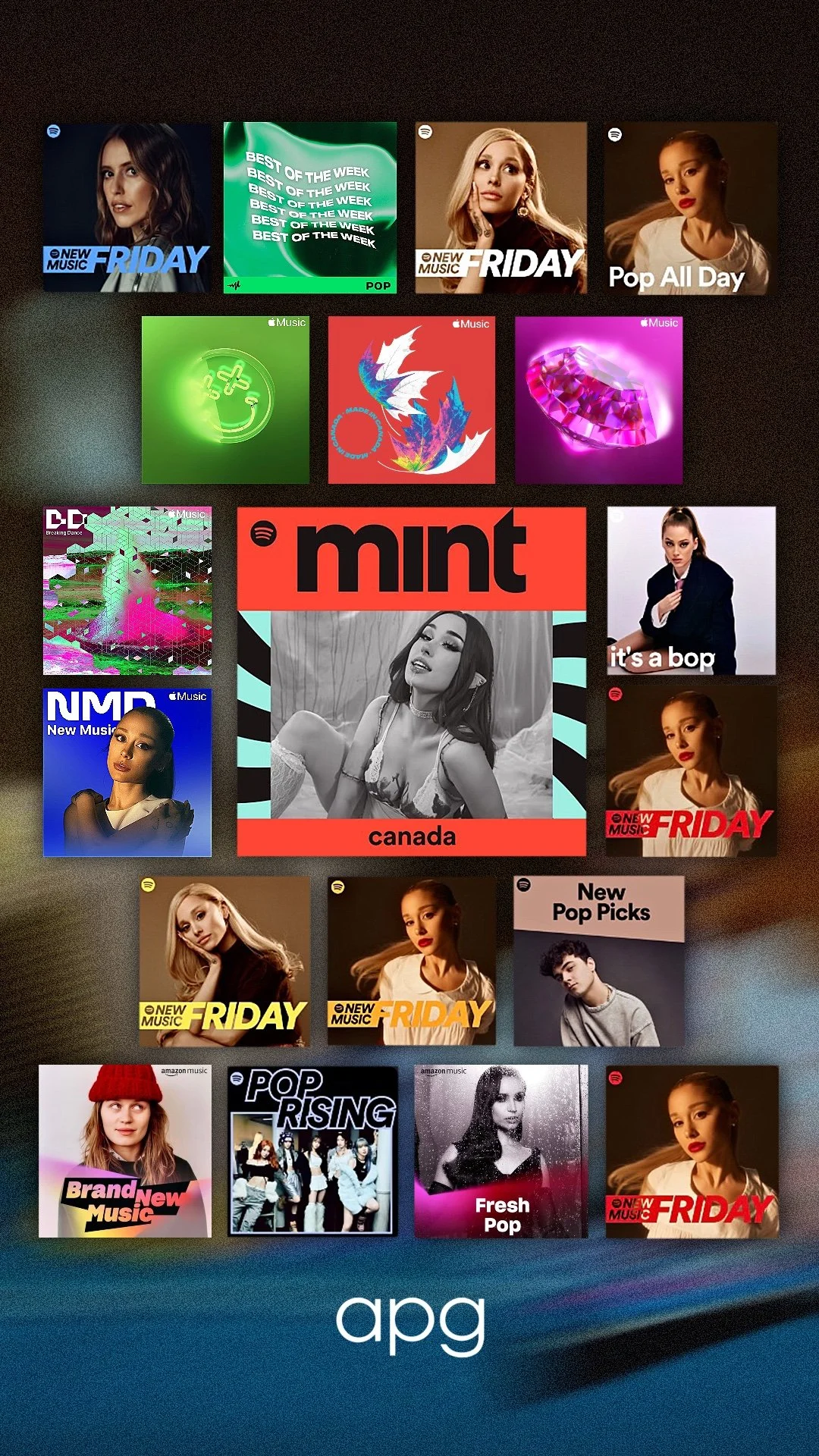 As a marketing/streaming intern at APG, I was able to grow as a creative in the music industry. Here are some of the weekly graphics I made that were posted on the label’s and artists’ Instagrams.