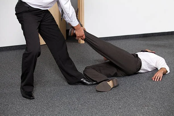 Soon, his colleagues (actors) run out and try to drag him back inside, but to no avail.